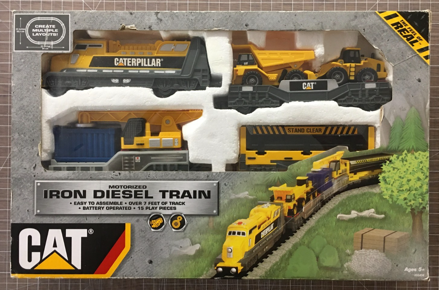 CAT Motorized Iron Diesel Train Set - 7' of Track, Battery Operated, 15 Pieces