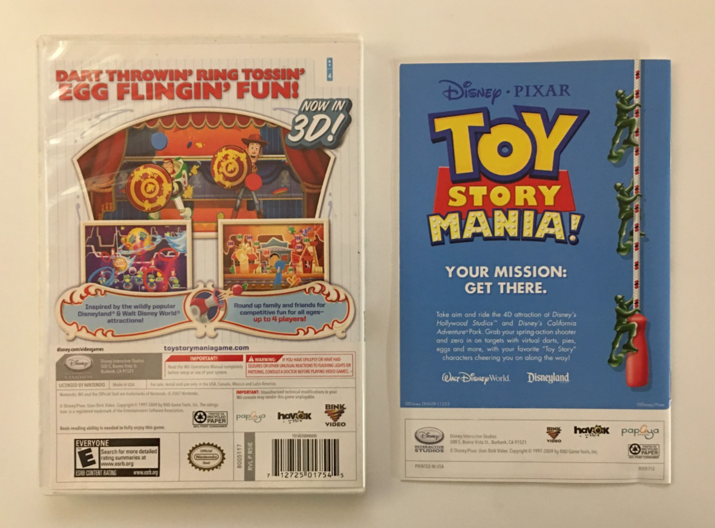 Toy Story Mania (Nintendo Wii, 2009) Box, Disc & Manual, No 3D Glasses