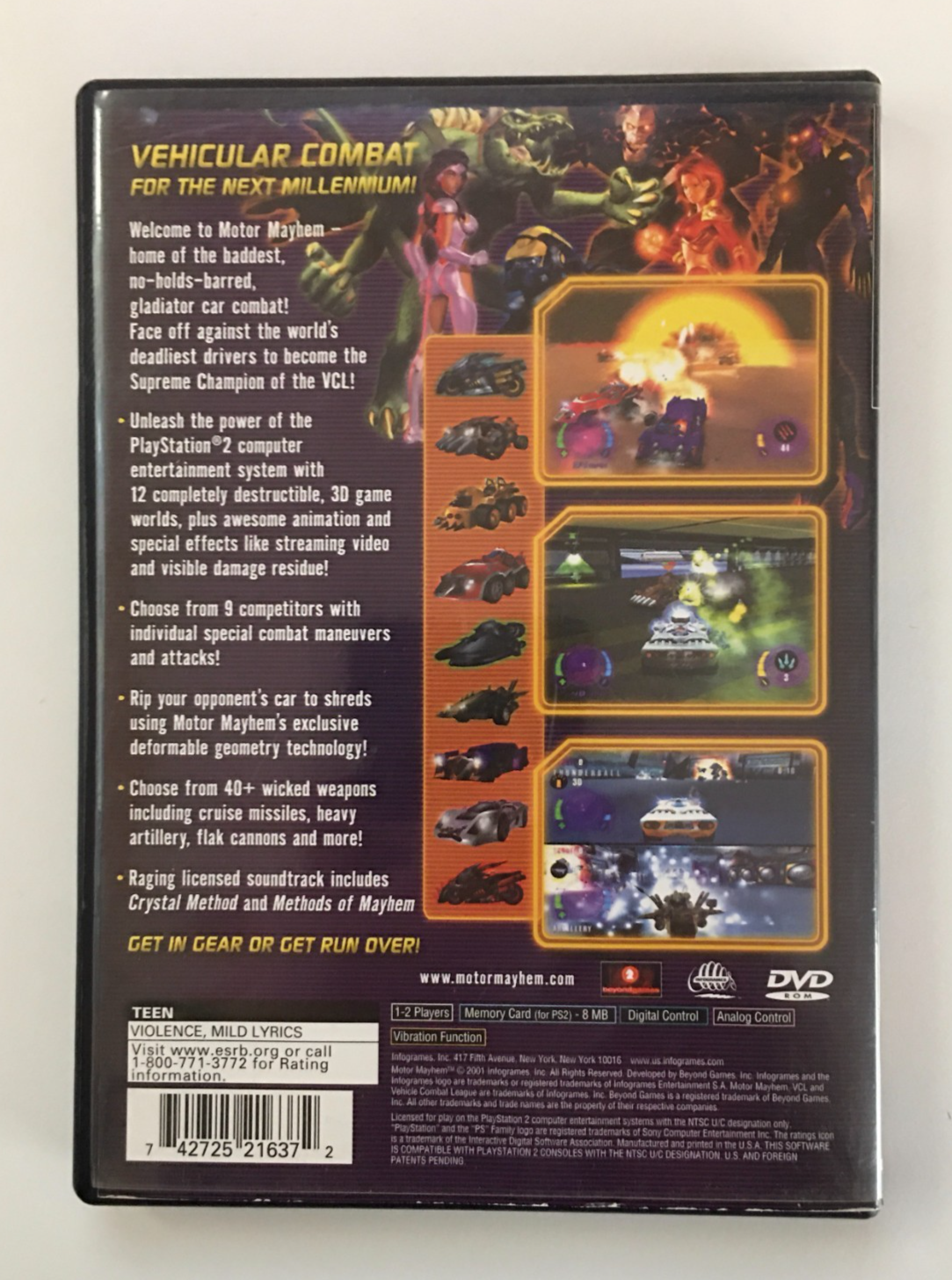Motor Mayhem (Sony PlayStation 2, 2001) PS2 - Infogrames - Box & Disc, No Manual