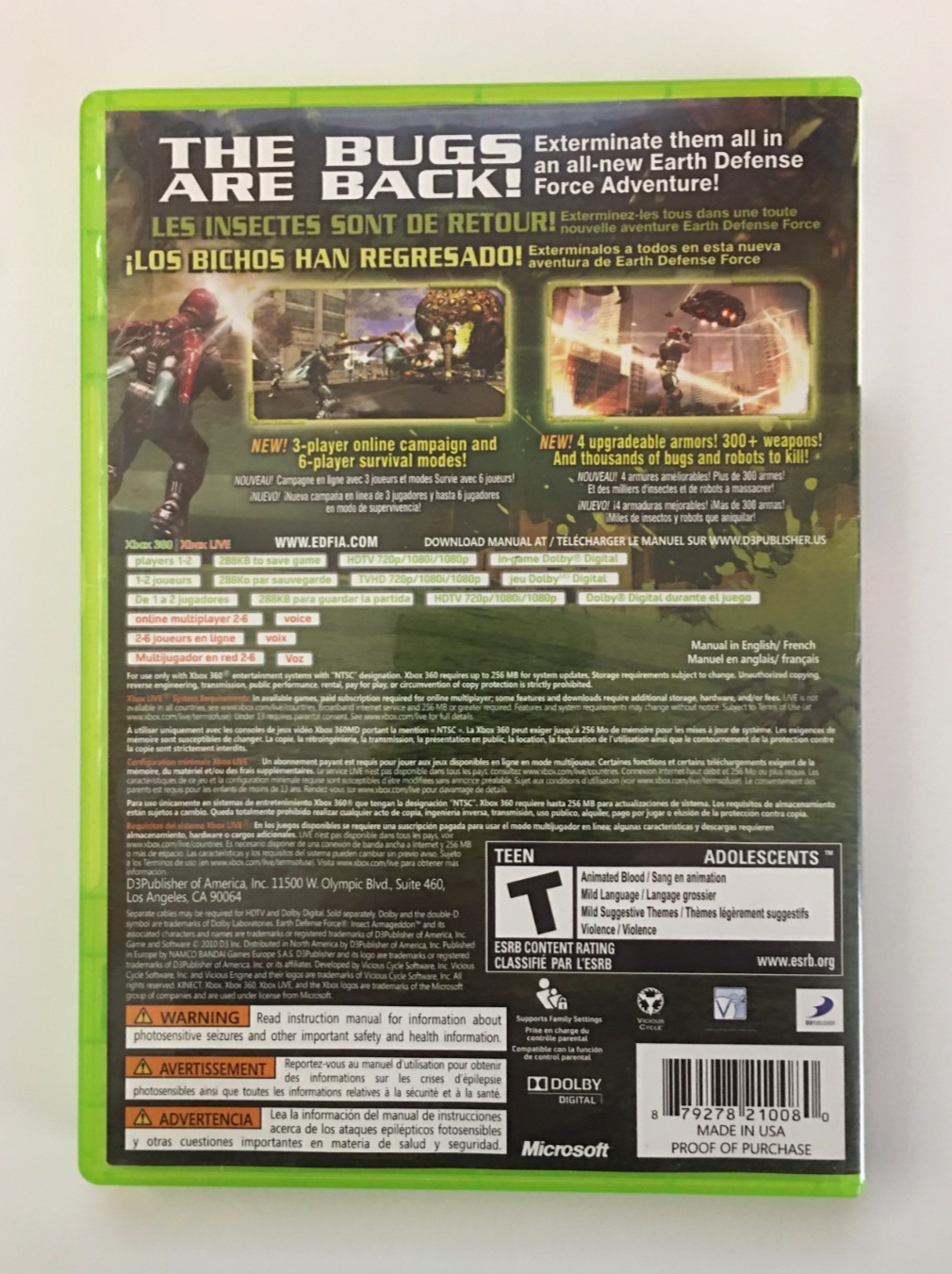 Earth Defense Force: Insect Armageddon (Microsoft Xbox 360, 2011) No Manual